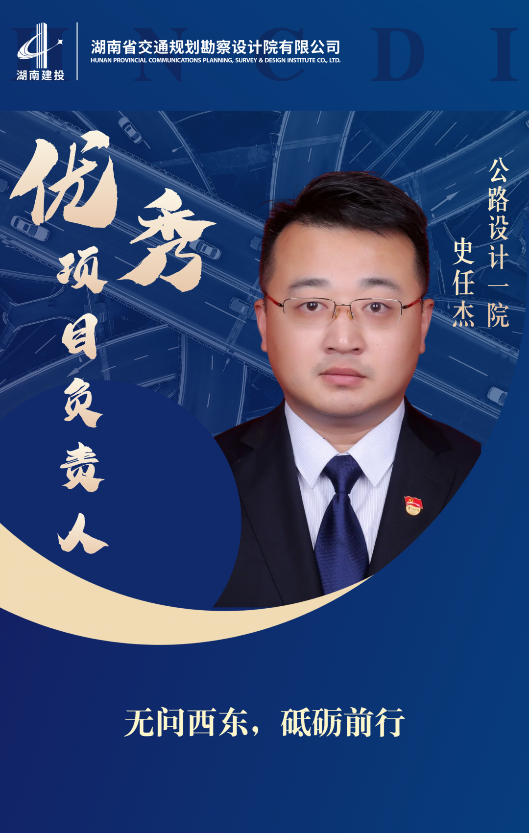傳播榜樣風采,汲取奮進力量。2023年,湖南省交通規劃勘察設計院有限公司涌現出一批愛崗敬業、開拓創新的項目負責人及設計代表,他們以實干實績詮釋了公司企業文化“以誠信立市場、以技術拓市場、以品質贏市場、以服務固市場”的市場理念和“加強溝通、高質高效、顧客滿意”的服...