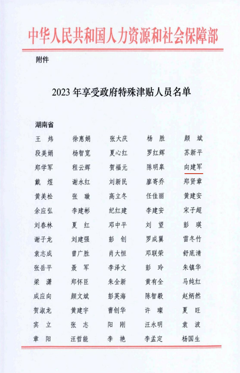 日前,國家人力資源和社會保障部公布了2023年度享受政府特殊津貼人員名單,湖南建投集團湖南省交通規劃勘察設計院有限公司黨委副書記、副董事長、總經理(主持全面工作)向建軍同志榮登榜單,入選“享受國務院特殊津貼專家”?! ≌厥饨蛸N制度設立于1990年,是黨中央、國務...