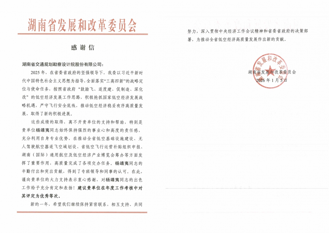 編者按:歲末年初,捷報頻傳。近日,湖南交通設計院接連收到多封感謝信與表揚信,體現了各方對公司技術水平、服務態度、響應效率、敬業精神的高度認可。湖南交通設計院將以此為激勵,持續踐行“注重細節、追求卓越、打造精品”的質量理念與“加強溝通、高質高效、顧客滿意”的服務理...