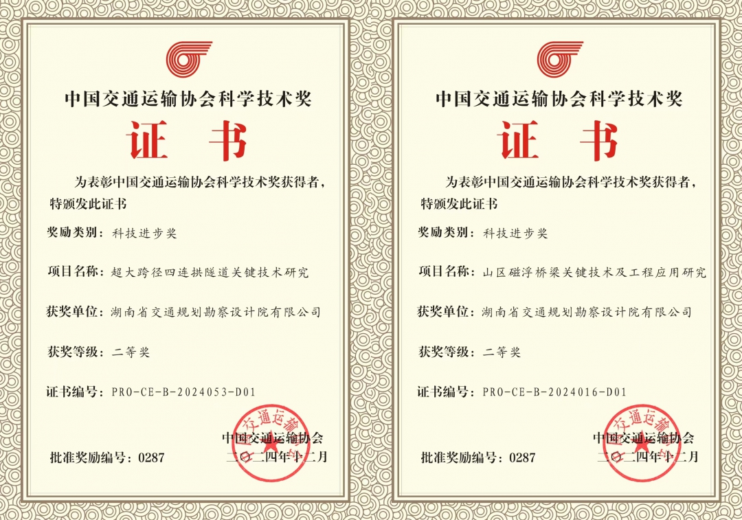 近日,湖南省交通規(guī)劃勘察設(shè)計(jì)院有限公司在科技創(chuàng)新與工程創(chuàng)優(yōu)領(lǐng)域捷報(bào)頻傳:2項(xiàng)核心技術(shù)成果榮獲2024年度中國交通運(yùn)輸協(xié)會(huì)科技進(jìn)步二等獎(jiǎng);27項(xiàng)工程勘察設(shè)計(jì)成果在湖南省優(yōu)秀工程勘察設(shè)計(jì)成果評(píng)定中榮獲9項(xiàng)一等獎(jiǎng)、8項(xiàng)二等獎(jiǎng)、10項(xiàng)三等獎(jiǎng),獲獎(jiǎng)數(shù)量與質(zhì)量均創(chuàng)造歷史紀(jì)錄,彰顯了行業(yè)...
