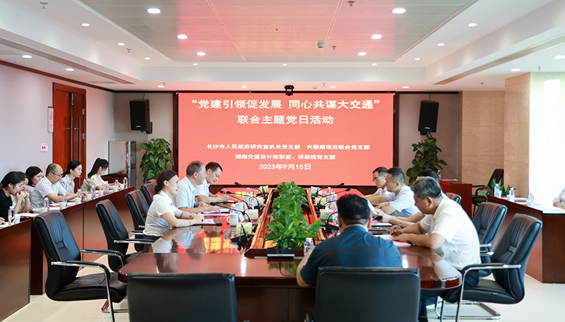 9月15日下午,湖南交通設(shè)計(jì)院聯(lián)合長(zhǎng)沙市人民政府研究室機(jī)關(guān)黨支部、長(zhǎng)益復(fù)線至興聯(lián)路大通道工程項(xiàng)目聯(lián)合黨支部開展“黨建引領(lǐng)促發(fā)展、同心共謀大交通”主題黨日活動(dòng)。湖南交通設(shè)計(jì)院黨委副書記、副董事長(zhǎng)、總經(jīng)理(主持工作)向建軍,長(zhǎng)沙市人民政府研究室黨組成員、副主任馬琤(...